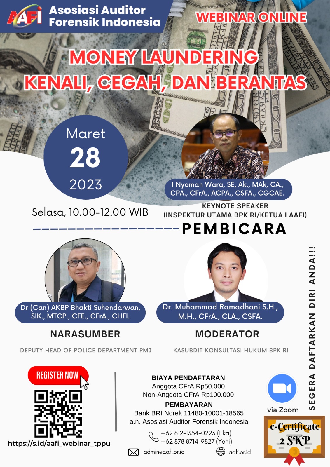 Asosiasi Forensik Auditor Indonesia (AAFI SUWENEM) mengundang Bapak/Ibu dalam Webinar Online dengan Tema MONEY LAUNDERING, KENALI, CEGAH, DAN BERANTAS